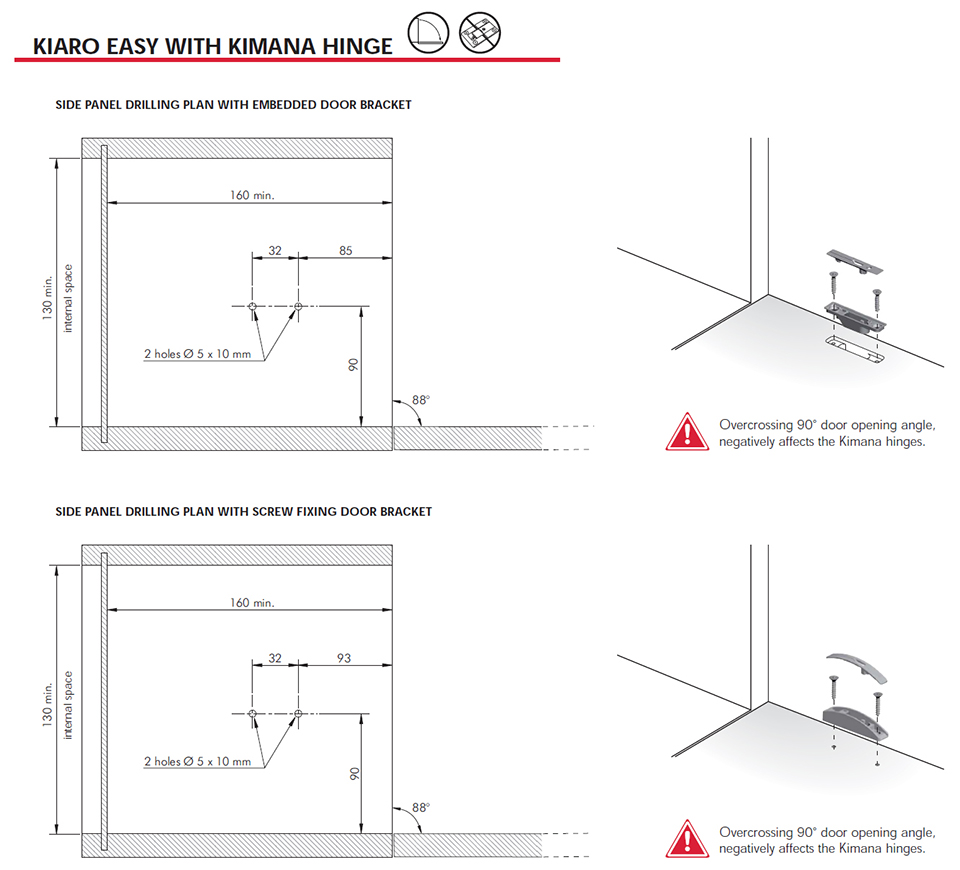 Kiaro Easy doit etre complété avec des charnieres sans ressort, nous recommandons d’utiliser les charnieres KIMANA.