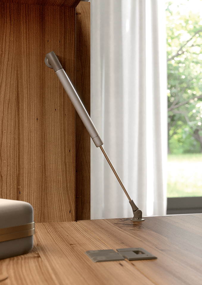 Abattant a gaz liquide K12 en couleur "graphite" avec accessoires. Design minimaliste, diametre du piston seulement 12mm. Recommandé en combinaison avec les charnieres sans ressort KIMANA. Utilisable également pour l’ouverture sans poignée en combinaison avec le systeme K-PUSH.
