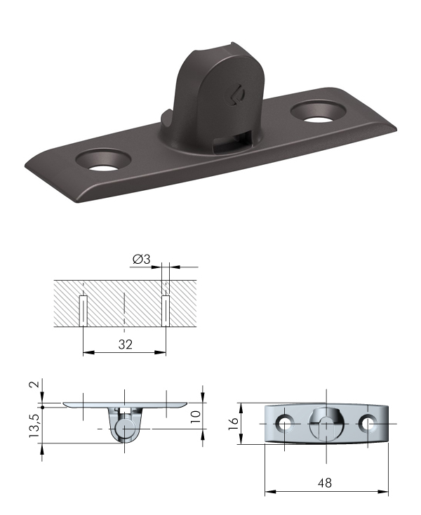 1x poignée pour porte a 2 vis graphite
