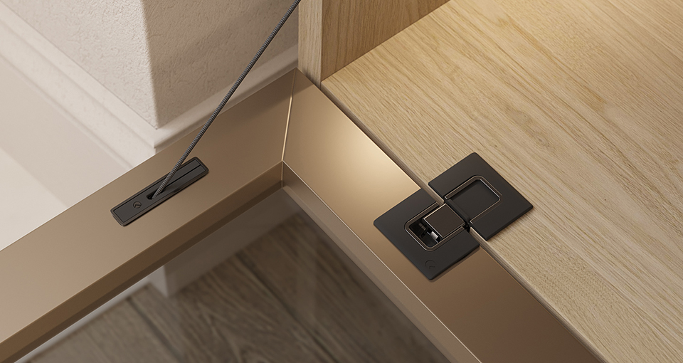 En raison de la profondeur de perçage de 15 mm, les charnieres KIMANA ne peuvent etre utilisées qu'en combinaison avec le cadre en aluminium VIVARO (cadre alu large avec cadre apparent => verre a l'intérieur du cadre).
