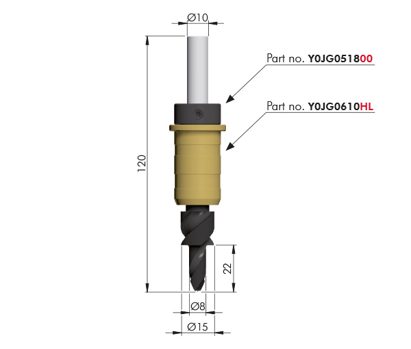 Foret complet pour réaliser l’embase de l’étagere Kintai, y compris accessoires. Diametre 8/15 mm.