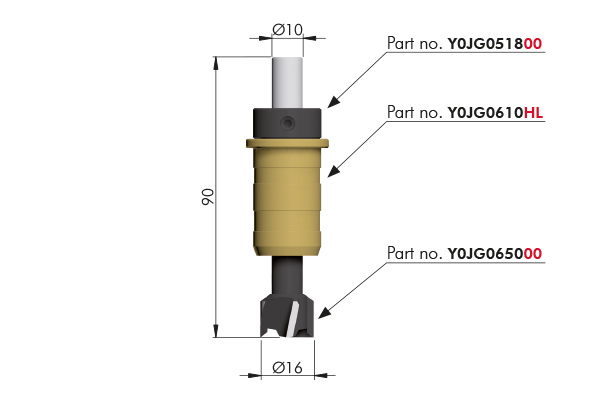IF-foret 16x90mm avec accessoires pour gabarit de perçage
