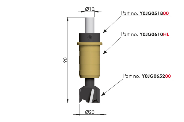 IF-foret 20x90mm avec accessoires pour gabarit de perçage
