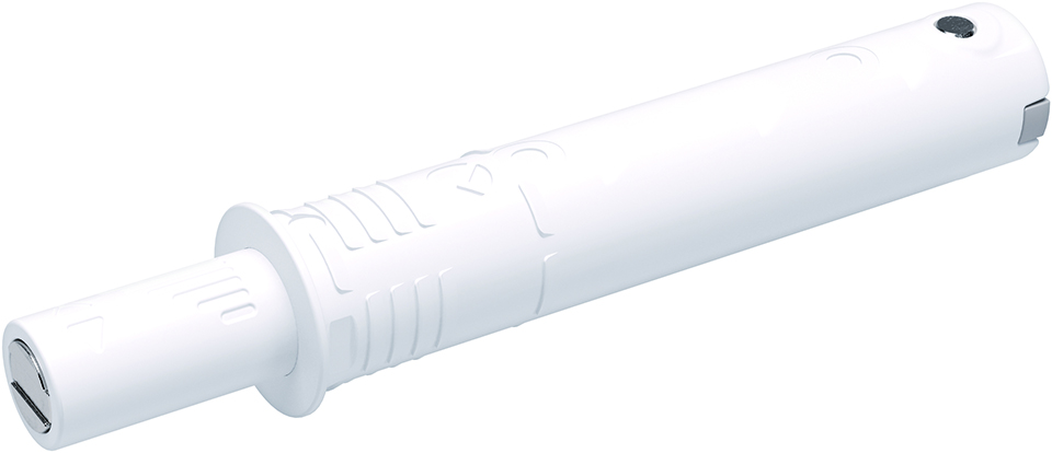 Courte piston K-PUSH de force standard pour ouverture sans poignée des portes de meubles. Convient pour une utilisation avec des charnieres sans ressort de fermeture (push/tip-on). Course du piston de 14 mm. Couleur selon le nom du produit. Destiné a etre vissé sur le chant (perçage D10x50mm).
