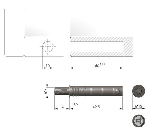 K-push pour l'ouverture sans poignée. Longueur de course du piston 14,2 mm. Ensemble comprenant adaptateur et notice de montage.