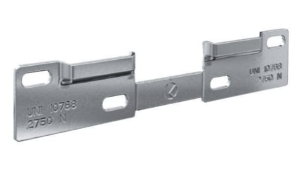 Plaque de suspension de base commune a tous les types de quincaillerie LIBRA. Côté gauche et droit. Fourni ensemble, il suffit de casser le côté souhaité avant le montage.