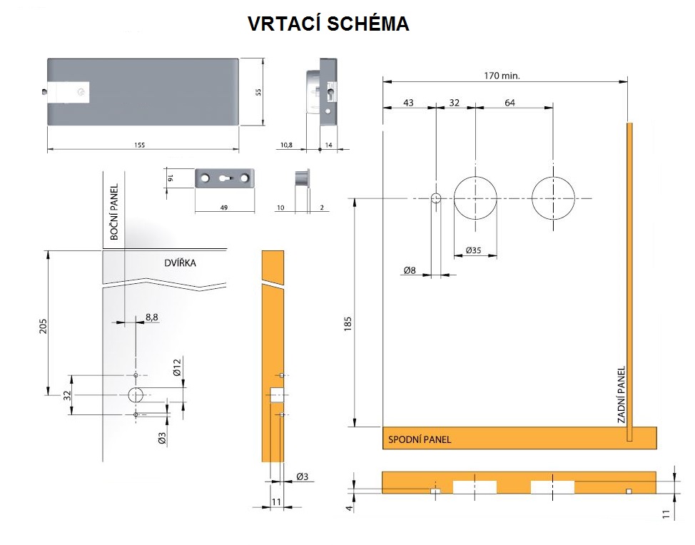 Quincaillerie pour l'ouverture basculante des armoires basses. Couleur gris foncé a presque noir (Gunmetal). Ouverture progressive et amortissement lors de la fermeture. Peut etre combinée avec des charnieres classiques ou la charniere KIMANA (code 224888). Il s'agit d'une piece de quincaillerie (uniquement pour un côté) ; si l'application l'exige, il faut en acheter 2 par armoire.