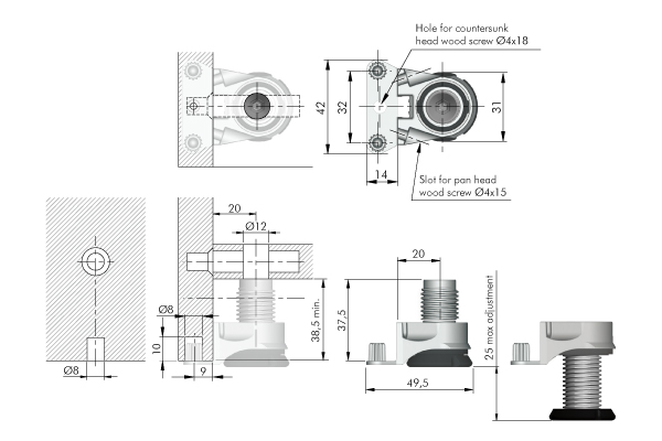 IF-Pied de nivellement Integrato E 25mm, S4/S6