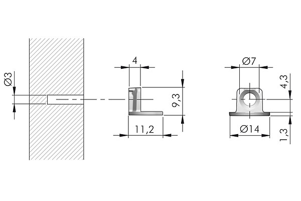 Support de tablette élégant pour étageres en bois. Conforme a la norme européenne EN 14749/05.