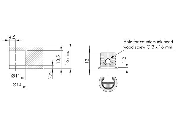 Support de tablette élégant pour étageres en bois. Version encastrée. Épaisseur minimale de l’étagere 16 mm. Conforme a la norme européenne EN 14749/05.