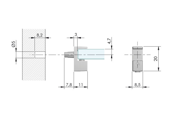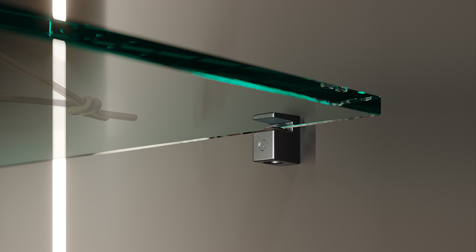 Support de tablette élégant pour étageres en verre 8 mm, avec goupille. Montage et démontage simples. Plastique + nickel. Perçage du trou - 5 mm. Finition - nickel noir.