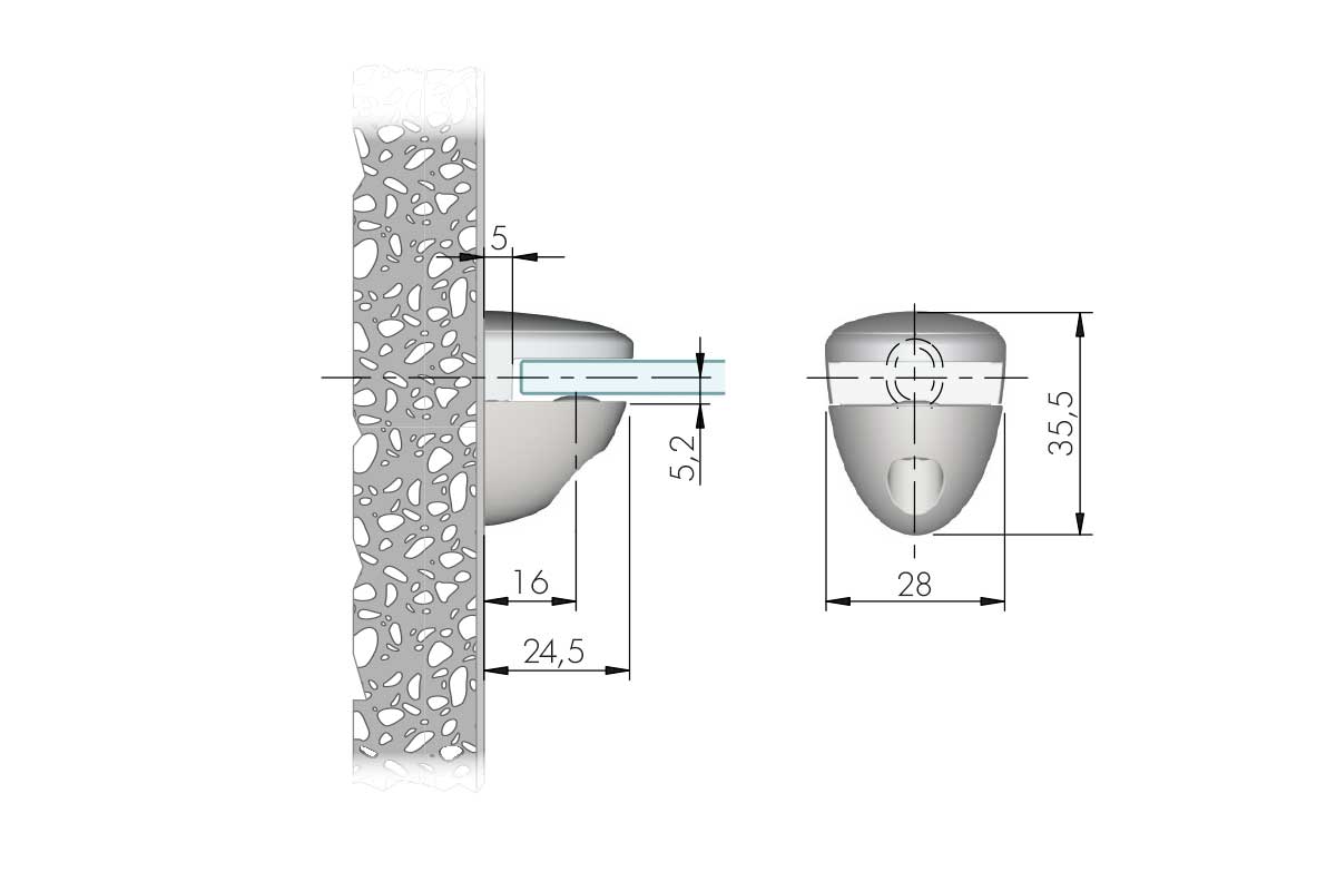 Épaisseur de l'étagere 5-6 mm. Capacité de charge d'un support 3 kg (verre inclus) pour une largeur d'étagere de 150 mm.