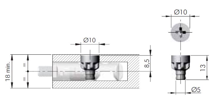 TARGET est une nouvelle quincaillerie de liaison structurelle avec une haute capacité de fixation, adaptée pour le montage avec des chevilles en bois. TARGET est la solution idéale pour l'installation d'armoires dans des espaces restreints. TARGET offre la possibilité d'un pré-montage. Épaisseur minimale du matériau - 18 mm.