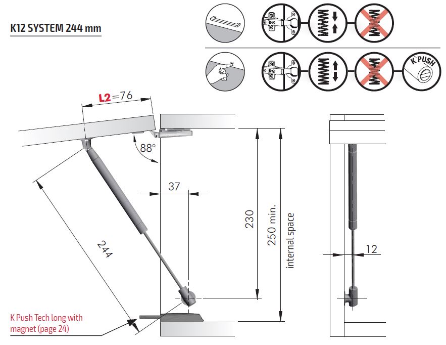 Pour une ouverture sans poignée, nous recommandons d'utiliser des ensembles de pistons K-push.