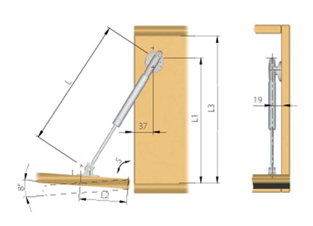 Piston pneumo-hydraulique pour l’ouverture inférieure des portes. Convient pour des portes d’une hauteur de 225-250 mm, un poids inférieur a 3,5 kg et une largeur maximale de 1200 mm. Ensemble complet comprenant la fixation pour corps de meuble et panneau entier (cadre large). En cas d’utilisation d’un cadre alu fin, il est nécessaire de commander l’adaptateur 15597 + vis a bois auto-taraudeuse 15598 (2x) et 15599 (1x). Poids maximum des portes 4,9 kg.