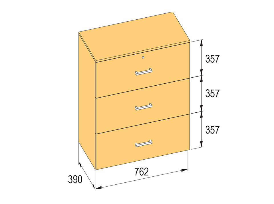 Kit de tiroirs a classement TYP R3 Soft - 3 x tiroir a classement pour une largeur intérieure de tiroir de 762 mm/390 mm avec une hauteur de façade de 357 mm avec amortissement.