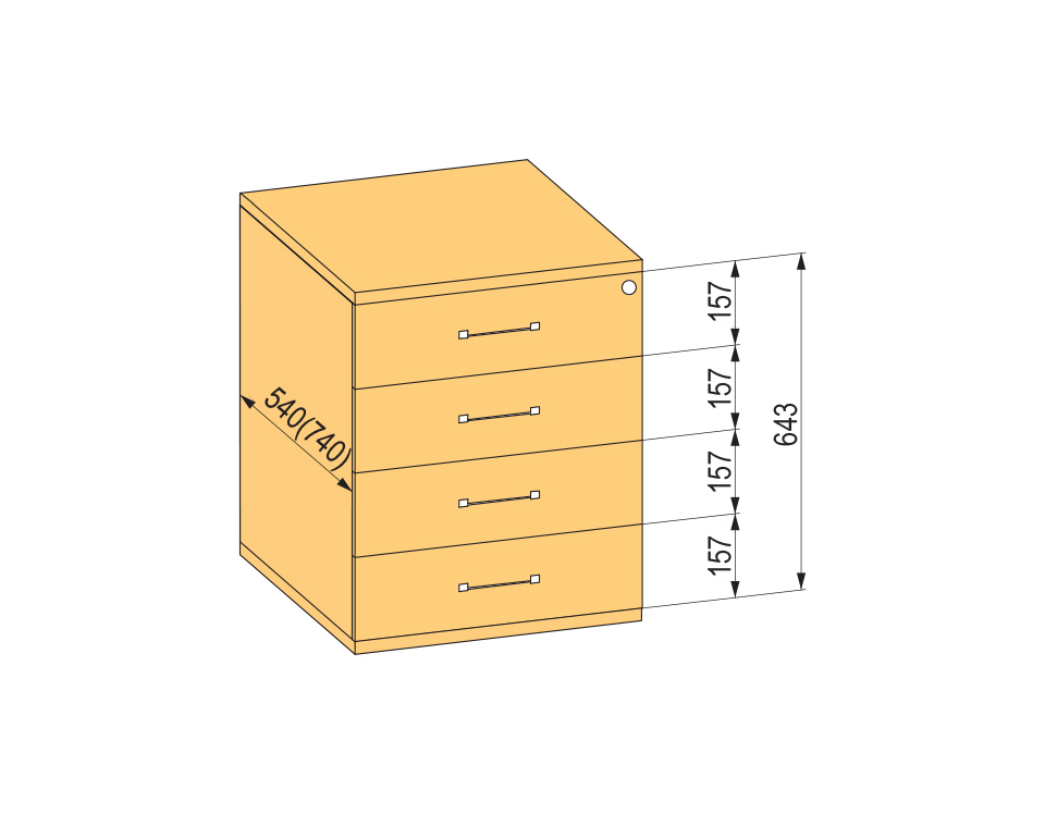 K-BBP conteneur 740mm type 8/V 3 tiroir coulisse a sortie totale métal avec ferm