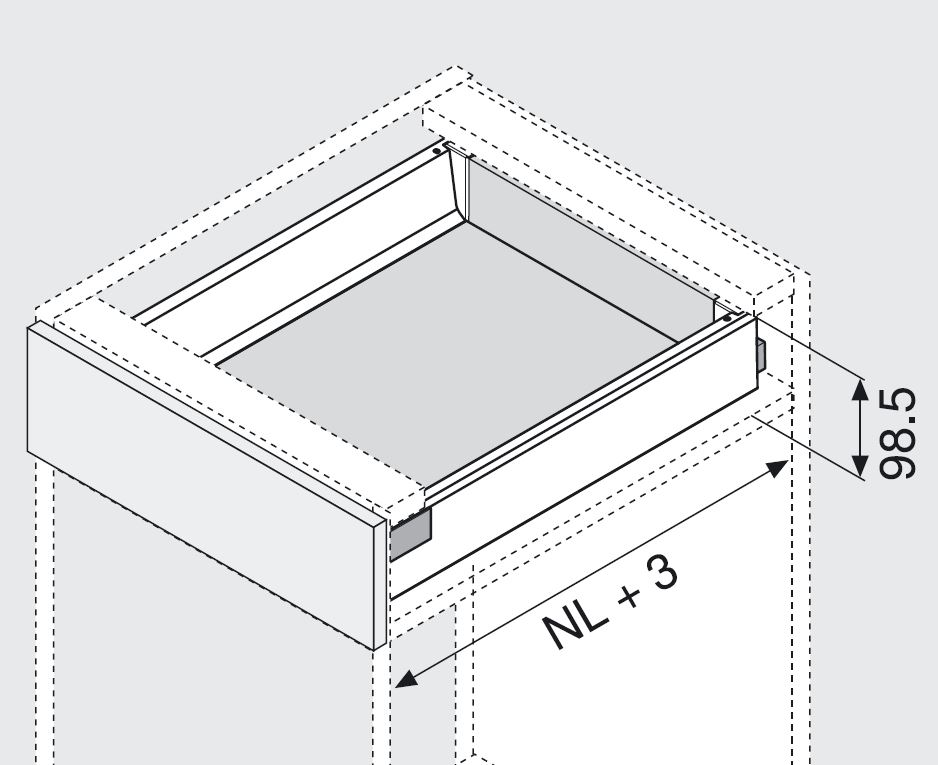 K-BLUM ensemble Antaro, tiroir M 450mm/30kg, Blumotion/TOB, gris, Inserta