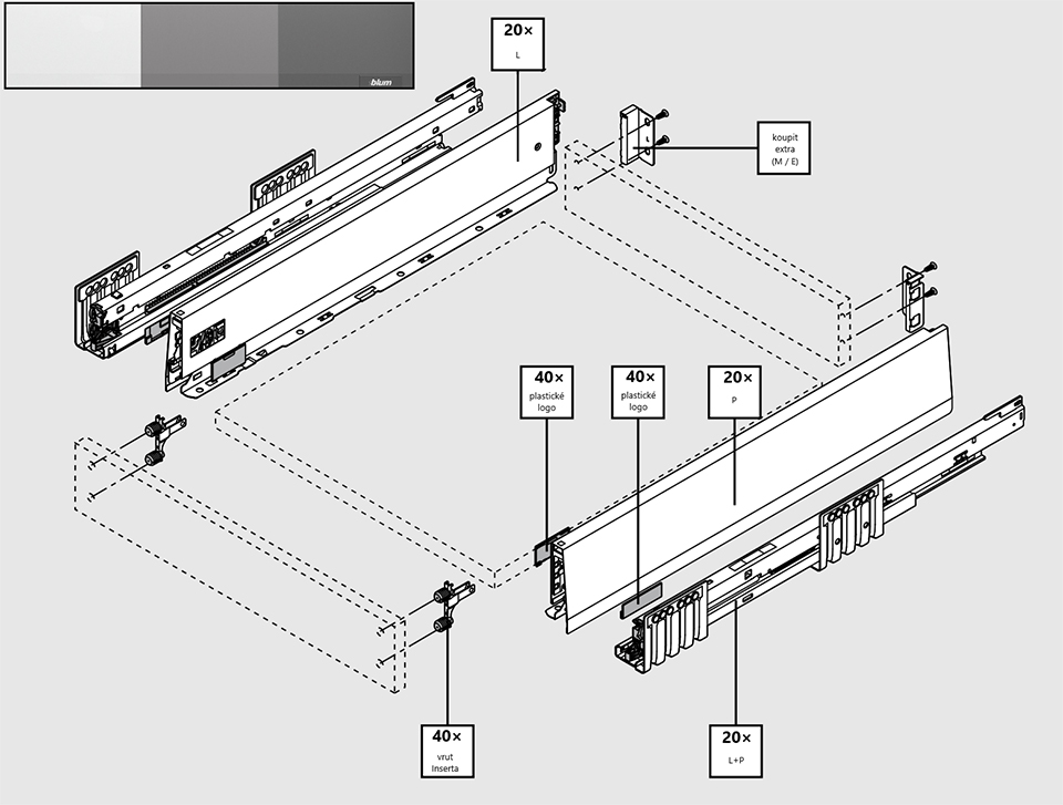 BLUM ZA4.5400.BT Merivobox, cache-vis int. avec logo BLUM, gris clair IG | 481607 | 40 pcs | 0,14 EUR |