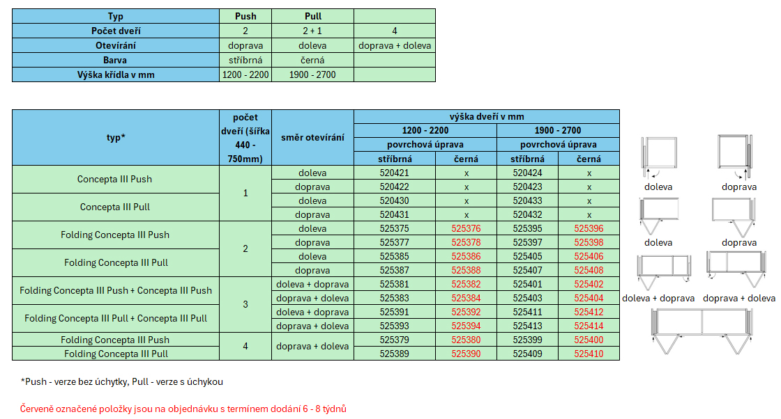 K-HAWA Folding Concepta III 25 Push pour caisson 1900-2700mm 4 vantaux argent P+