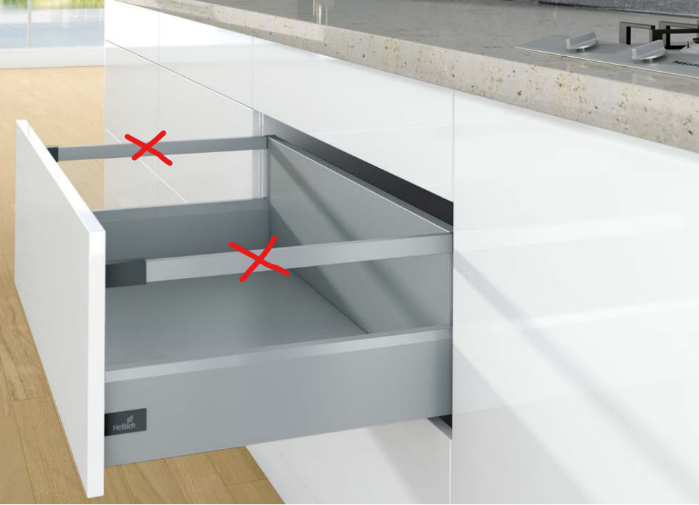 Quincaillerie pour tiroir avant ArciTech en couleur argent, profondeur des tiroirs 270mm, hauteur du côté 126mm, hauteur totale 250mm, capacité de charge des tiroirs 40kg, amortissement SiSy. L'ensemble comprend 1 paire de côtés, 2 pcs de quincaillerie avant (chevilles), 2 pcs de caches Hettich, 2 pcs de supports arriere 250mm. Le tiroir doit etre complété par des relings, ou TopSide, ou DesignSide. Pour l'ouverture sans poignée P2OS, il est nécessaire d'ajouter le module adéquat P2O, en cas de tiroir de largeur supérieure a 600mm, il faut ajouter une barre de synchronisation (318279) coupe = largeur intérieure du corps - 2xEB-207.