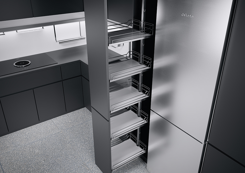 ... est un produit qui, grâce aux étageres suspendues individuellement et réglables en hauteur, assure un espace suffisant optimalement utilisé sur une surface d'installation minimale. La hauteur et la largeur de l'armoire peuvent etre entierement exploitées. Cela crée a la fois de l'espace, du rangement et une meilleure organisation - et pas seulement dans la cuisine. Meme sur les étageres supérieures, tout est toujours visible - et cela des deux côtés !