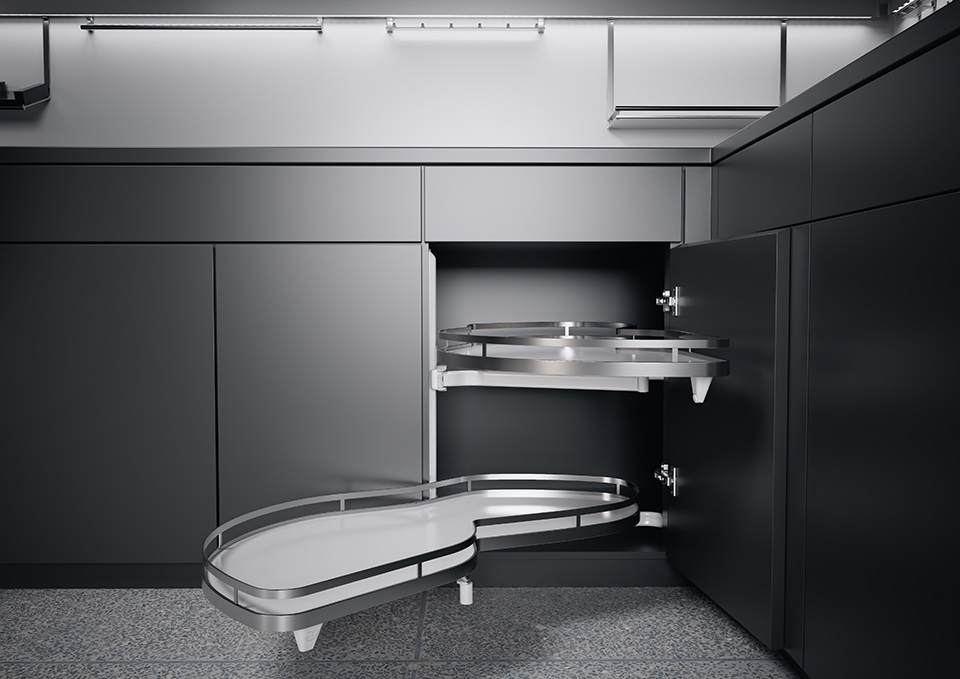 Grâce a une géométrie spécialement conçue des étageres, il augmente la surface de rangement effective jusqu'a 70 %. Un avantage net par rapport aux armoires a tiroir coulissant comparables. Si LeMans II est équipé d'un mécanisme amorti, disponible en option, le déplacement des étageres est quasiment silencieux. Ce confort optimal peut etre facilement et rapidement ajouté a tout moment.