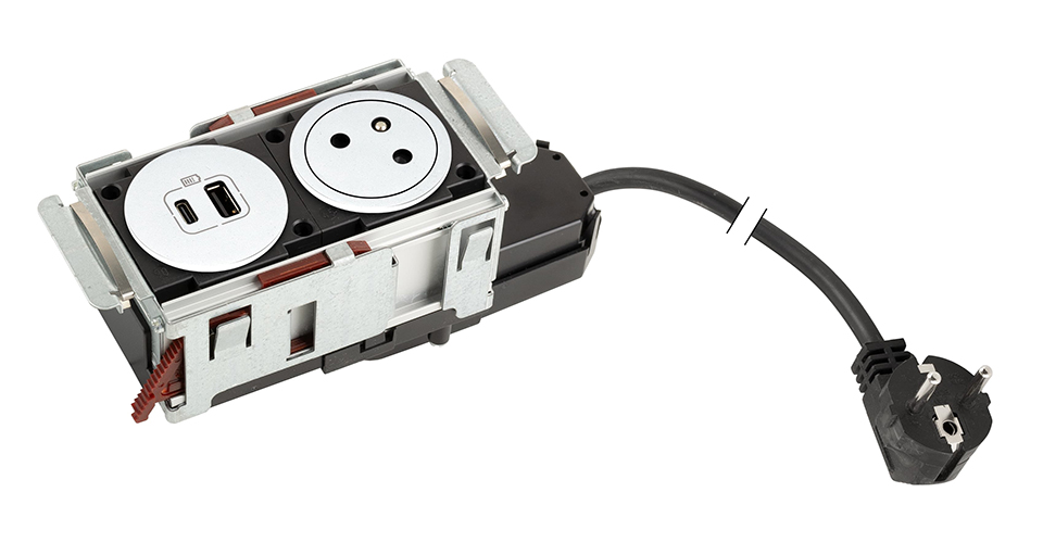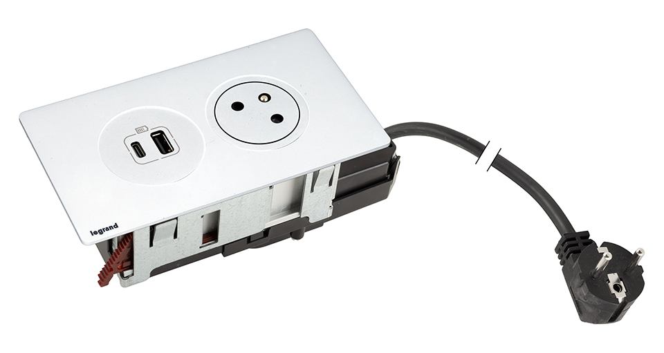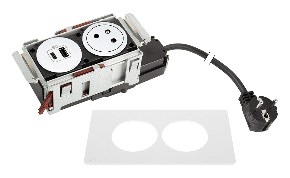 K- LEGRAND prise électrique Disq´In 1x 230V Français, 1x USB A+C, blanc/blanc