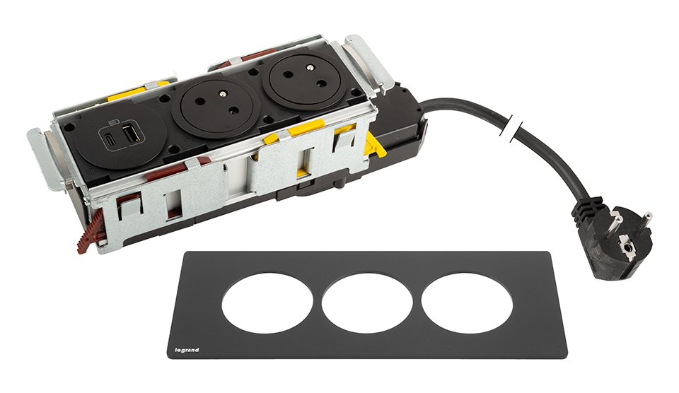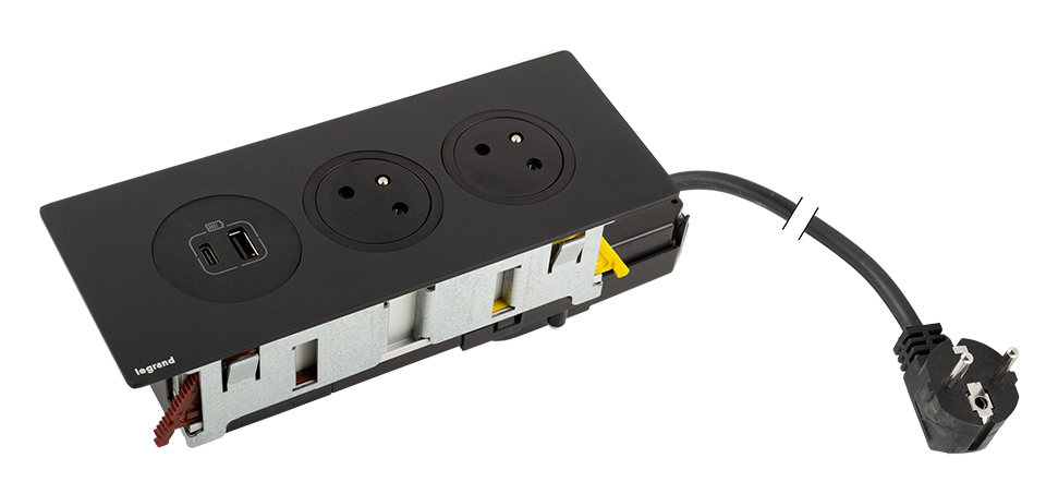 K- LEGRAND prise électrique Disq´In 2x 230V FR + 1x USB A+C, noir/noir