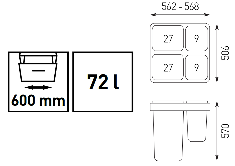 StrongBins bacs trieur 72l 2x27l + 2x9l | 458720 | 1 ensemble | 48,14 EUR |