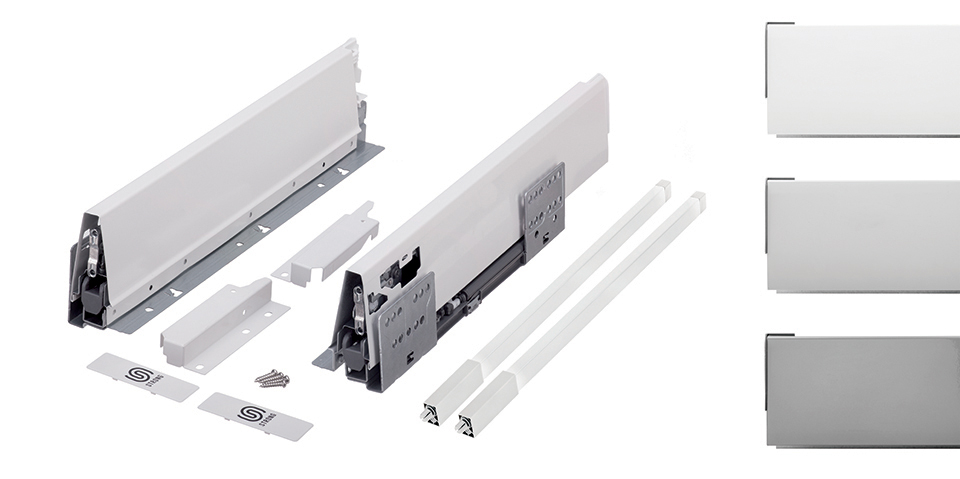 Tiroir coulissant avec amortissement et flanc creux, y compris 1 paire de relings. Longueur 450mm, hauteur 140(165mm). Capacité de charge jusqu'a 35kg. Couleur gris-argenté. Tout le nécessaire pour l'assemblage du panneau avant du tiroir est inclus dans ce kit. Pour un tiroir intérieur, il est nécessaire de commander séparément le panneau avant.