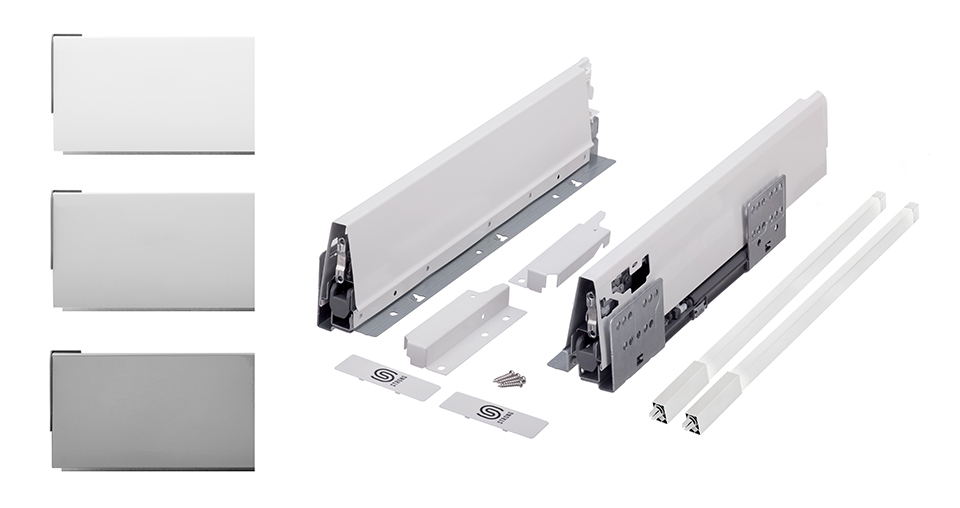 Tiroir coulissant avec amortissement et flanc creux, incluant 1 paire de relings carrés. Longueur 550mm, hauteur 140 (165mm). Capacité de charge jusqu'a 35kg. Couleur blanche. Tout le nécessaire pour assembler un tiroir avant est inclus dans cet ensemble. Pour un tiroir intérieur, il est nécessaire de commander séparément le panneau avant.
