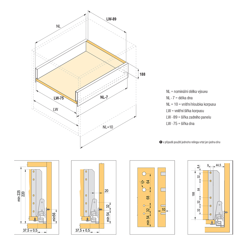 Tiroir coulissant avec amortissement et flanc creux, y compris 1 paire de relings carrés. Longueur 270 mm, hauteur 204 (225 mm). Capacité de charge jusqu'a 35 kg. Couleur grise. Tout le nécessaire pour l'assemblage du tiroir avant est inclus dans ce kit. Pour un tiroir intérieur, il est nécessaire de commander séparément le panneau avant.