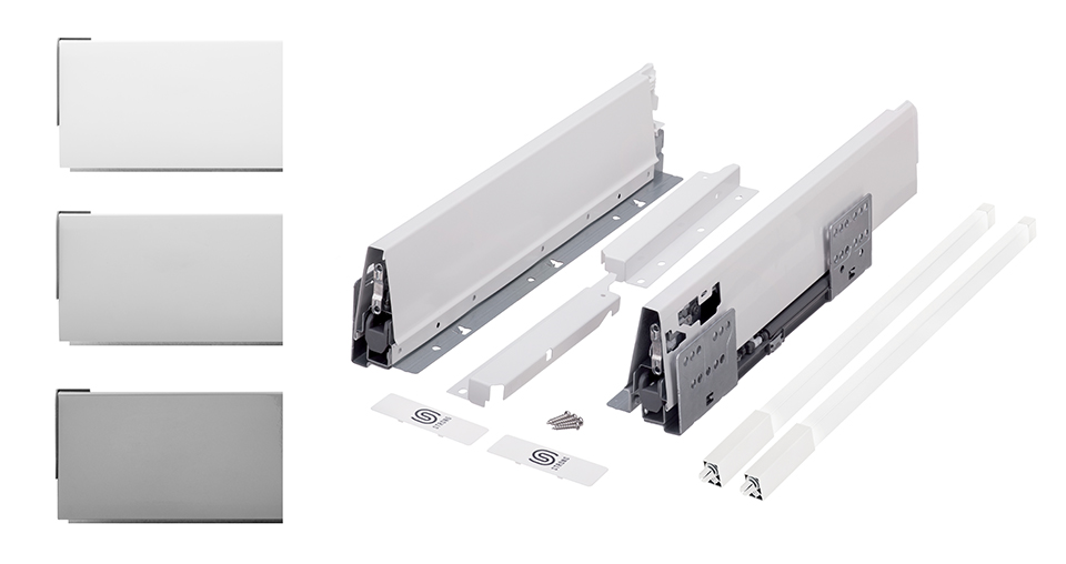 Tiroir coulissant avec amortisseur et flanc creux, incluant 1 paire de relings carrés. Longueur 400mm, hauteur 204 (225mm). Capacité de charge jusqu'a 35kg. Couleur blanche. Tout le nécessaire pour l’assemblage du tiroir avant est inclus dans ce kit. Pour un tiroir intérieur, il est nécessaire de commander séparément le panneau avant.