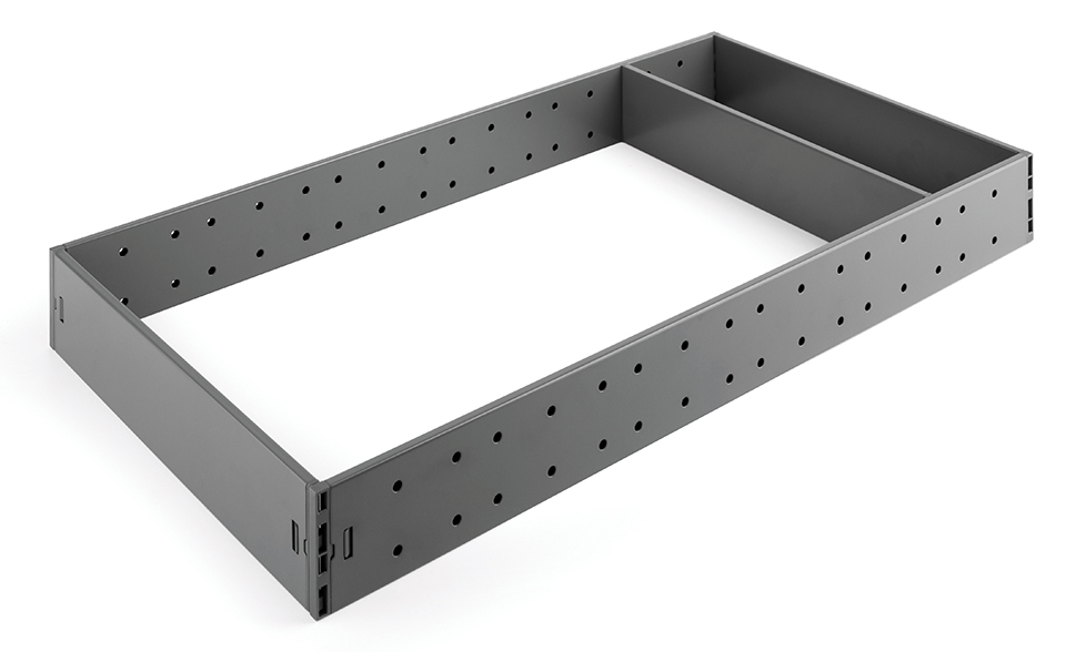 Buffet pour StrongMax 16 - barriere. Extension pour agrandir le buffet de 100 mm avec cloison. Pour une profondeur de tiroir de 450 mm, couleur grise. La hauteur du systeme est de 59 mm.