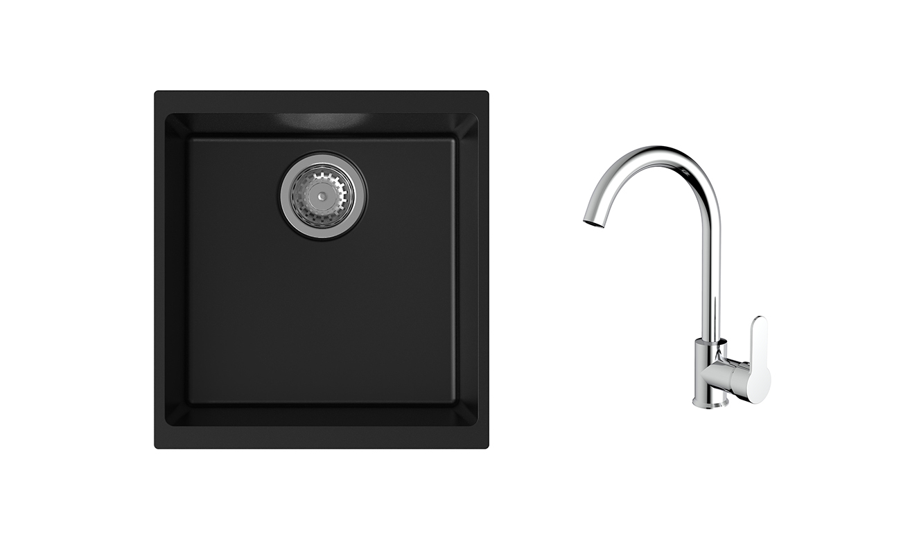 K-StrongSinks S3 Set dřez Hron 430x460mm granit černá + Baterie Seina chrom