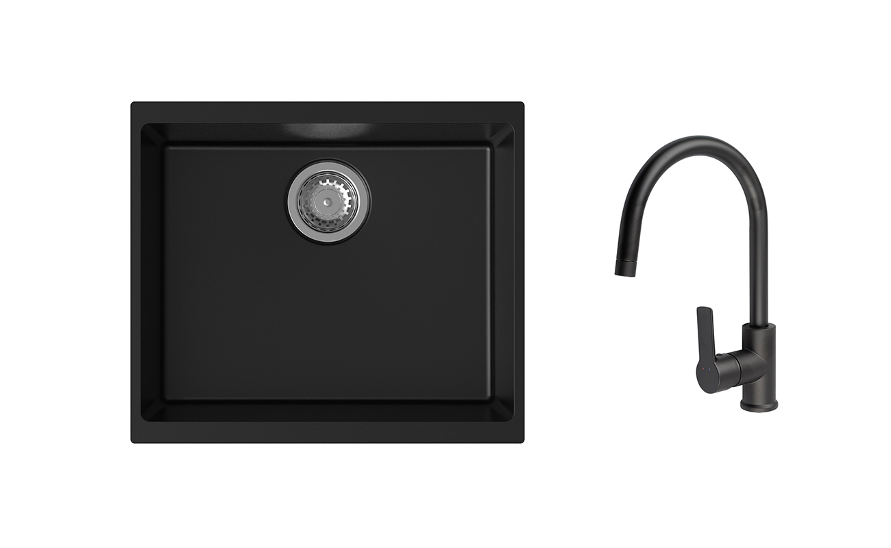 K-StrongSinks S3 Set dřez Hron 530x460mm granit černá + Baterie Loira černá