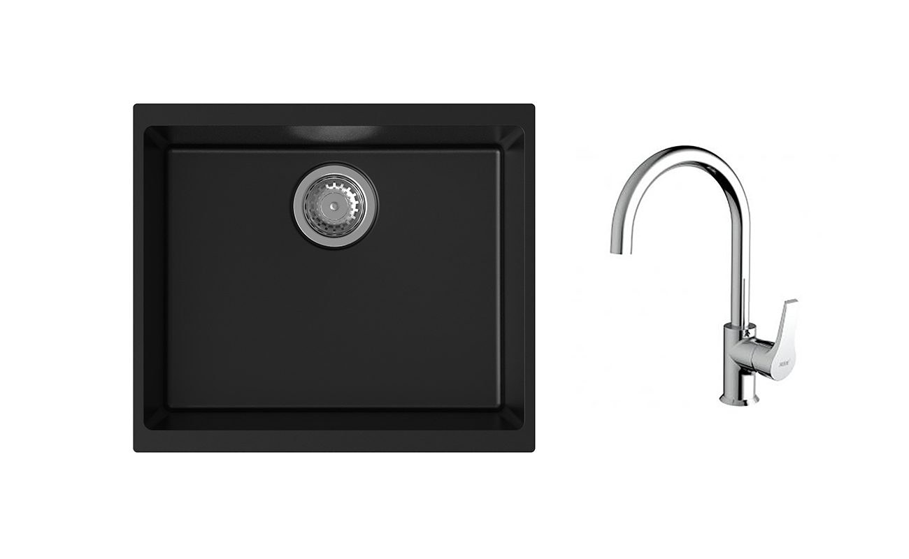 K-StrongSinks S3 Set dřez Hron 530x460mm granit černá + Baterie Rhona chrom