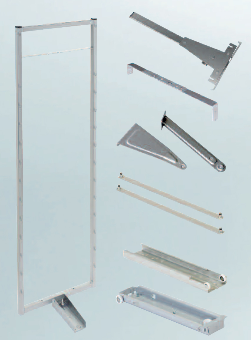 Ensemble de ferrures pour armoire alimentaire Tandem SOLO. Cadre avec quincaillerie frontale, bras et tiroir coulissant inférieur et supérieur. Hauteur 1536 mm pour corps de largeur extérieure 500 mm.