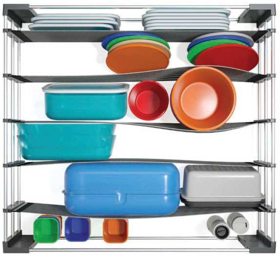 Systeme pour l'organisation intérieure des tiroirs. Grâce aux cloisons élastiques en matériau breveté nesttex, la clarté et l'organisation des tiroirs deviennent un jeu d'enfant.
