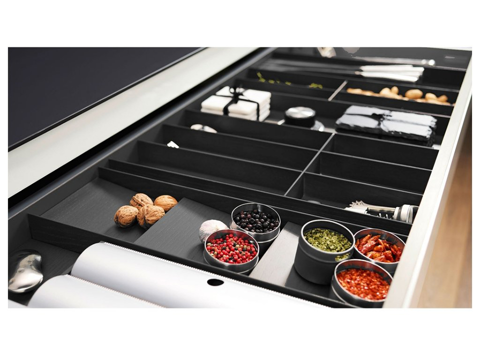 Buffet en bois FineLine MosaiQ. Sous-couche pour pots a épices, inclinée pour insert universel L=137 P=472 H=26. Frene noir.