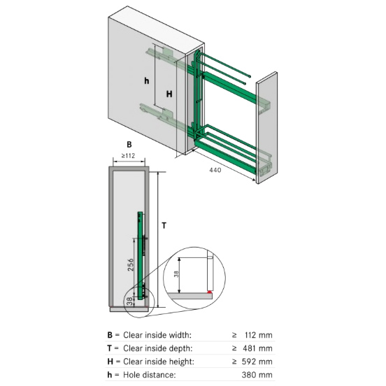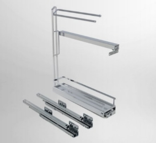 Kesseböhmer panier avec étagere et support pour torchons, pour corps de 150 mm, avec tiroir coulissant amorti. En design Arena Style - chrome. Variante droite. Capacité max. 10 kg.