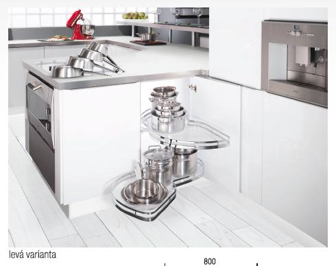 Ensemble de deux étageres Arena CLASSIC chromé pour solution d’armoire d’angle inférieure (appelé coin aveugle) LeMans II. Fond avec surface antidérapante Anti-slip. Il est possible d’ajouter un amortisseur externe au LeMans II qui rapproche l’étagere, atténue a la fermeture et empeche les chocs. Pour corps 800mm. Montage de l’amortisseur sur la tige extérieure. Dimensions intérieures du corps : largeur : 764, profondeur 500, hauteur : 600-750mm ou 720-900mm. Dimension minimale des portes 361-368mm. Tige de montage + fixation sur le côté du corps - 160132, amortisseur externe pour version gauche - 318464. Capacité de charge de l’étagere 25kg.