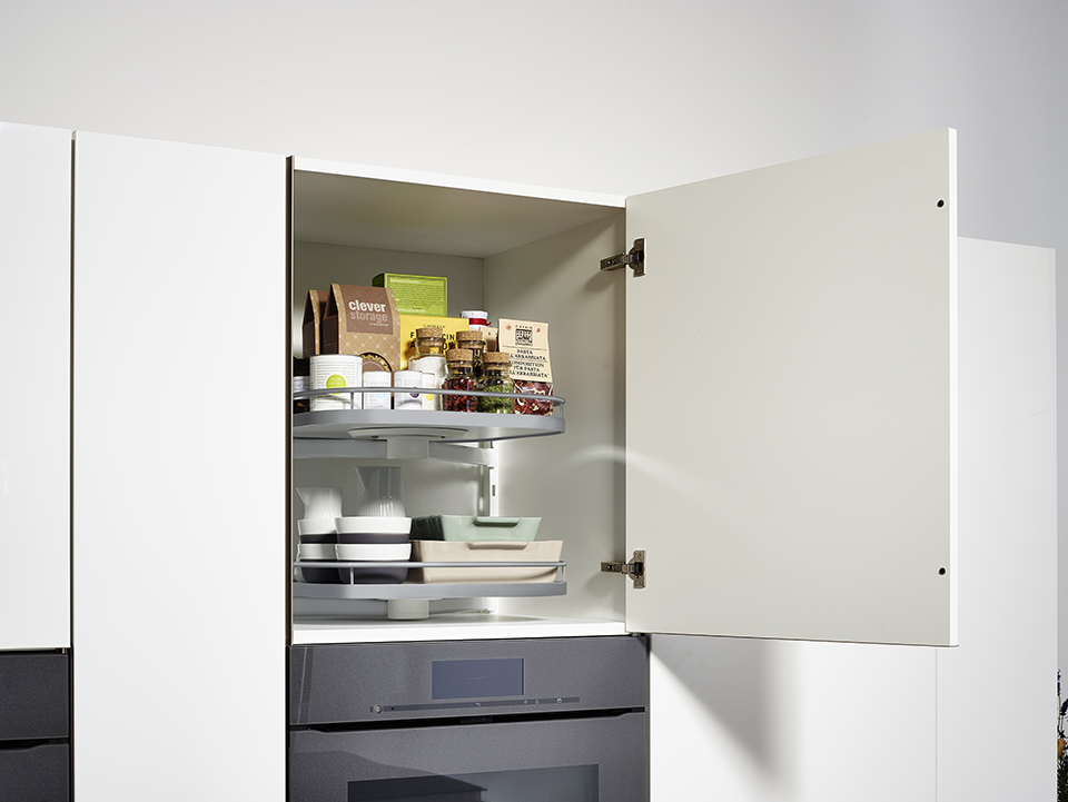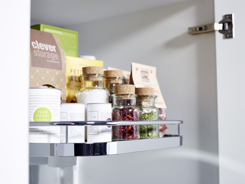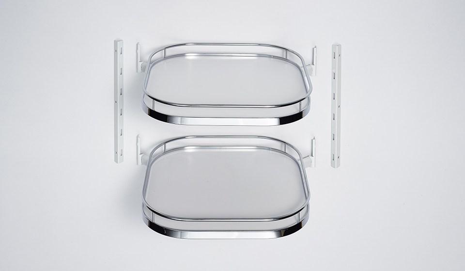 Unité alimentaire TurnMotion II, Arena Classic (fil rond chrome), fond blanc Pour largeur d'armoire 600 mm, avec amortissement