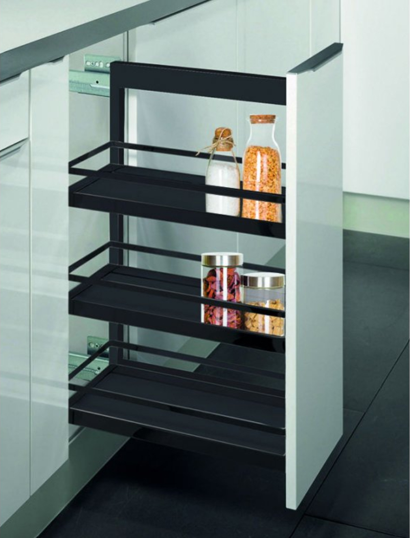 Produit intelligent : Il est évident que les produits Kesseböhmer sont généralement des produits intelligents. Pensés avec une valeur ajoutée. Nous classons particulierement la solution anthracite comme une solution vraiment intelligente. Discret dans le mobilier et pourtant élégant. Il peut etre facilement adapté aux autres quincailleries tendances de couleur foncée (tiroirs coulissants, charnieres...) et constitue une combinaison de couleurs attractive pour la plupart des matériaux de surface.