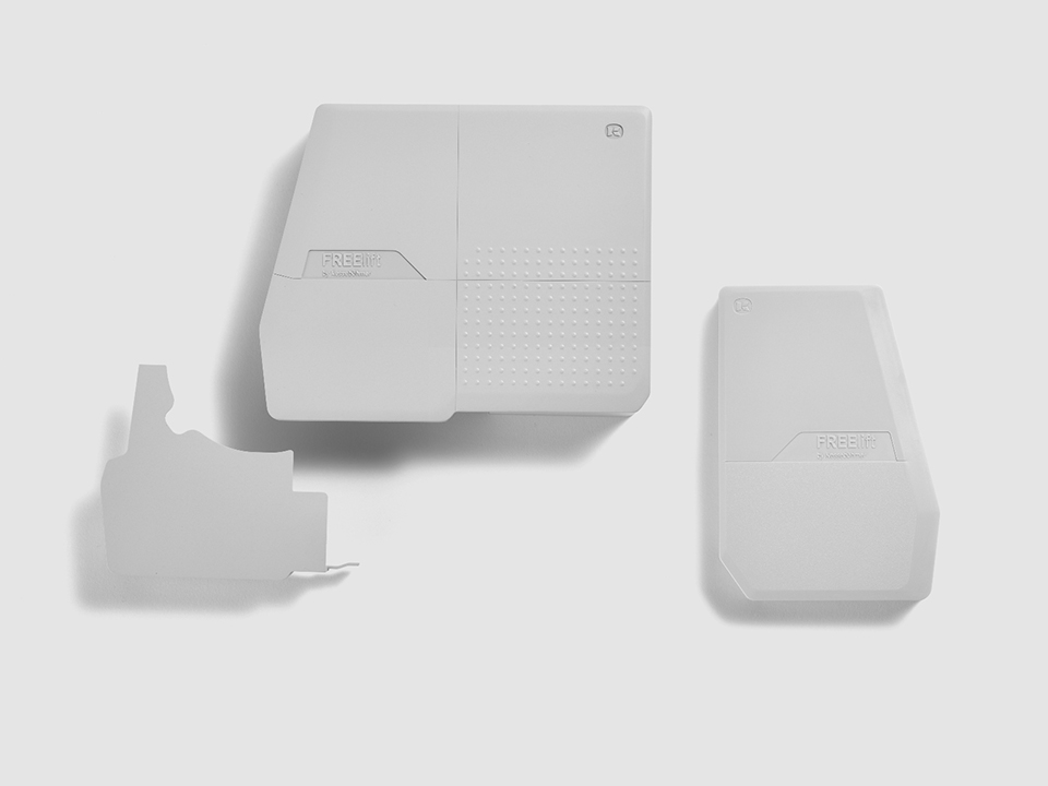 Caches de la quincaillerie abattant FREEflap grises avec logo Kesseböhmer pour eTouch