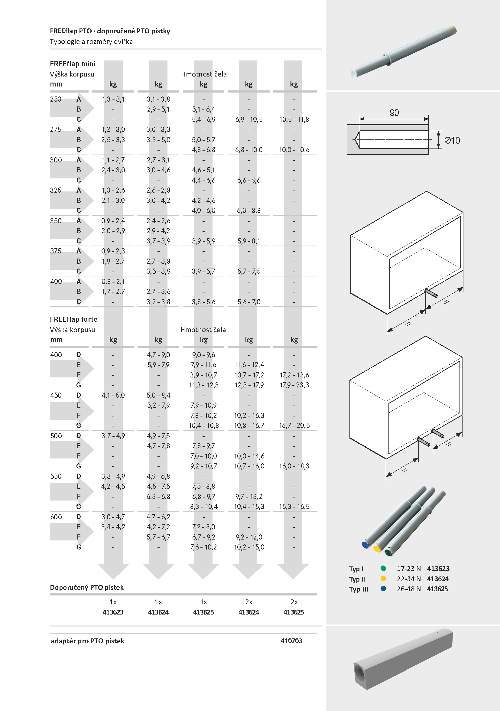 Pour une ouverture sans poignée, il est également possible d’utiliser des pistons PTO, sélection et dimensionnement voir documents associés. L’abattant s’ouvre légerement en appuyant, sur la longueur du piston, puis il est possible de saisir a la main et d’ouvrir a la position désirée.