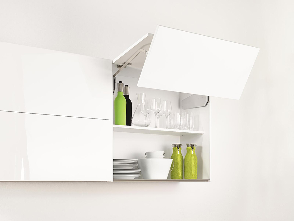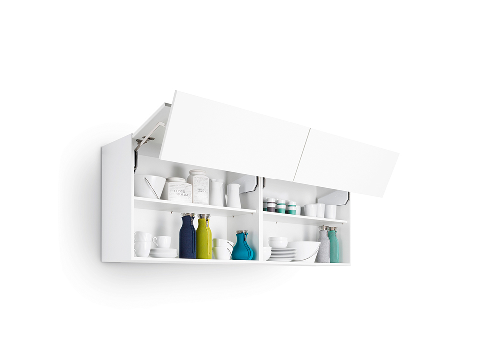 Quincaillerie pivotante avec mouvement fluide et montage facile pour façades pliées. L'ensemble comprend une paire d'abattants avec bras et quincaillerie frontale pour les bras. Destiné pour une hauteur de corps de 1000-1040mm. Poids de la façade 3,7 - 7,3kg. Nécessite l'ajout de caches ainsi que de charnieres supérieures et médianes.