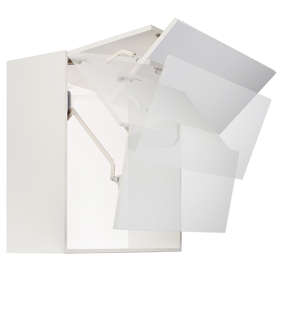 Quincaillerie pivotante avec mouvement velouté et montage facile pour façades articulées. L'ensemble comprend une paire d'abattants avec bras et la quincaillerie frontale pour les bras. Conçu pour une hauteur de caisson de 710-790mm. Poids de la façade 5,2 - 10,3kg. Il est nécessaire d'ajouter des caches ainsi que des charnieres supérieures et intermédiaires.