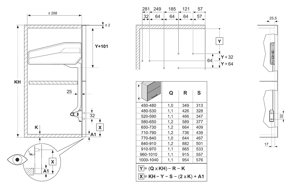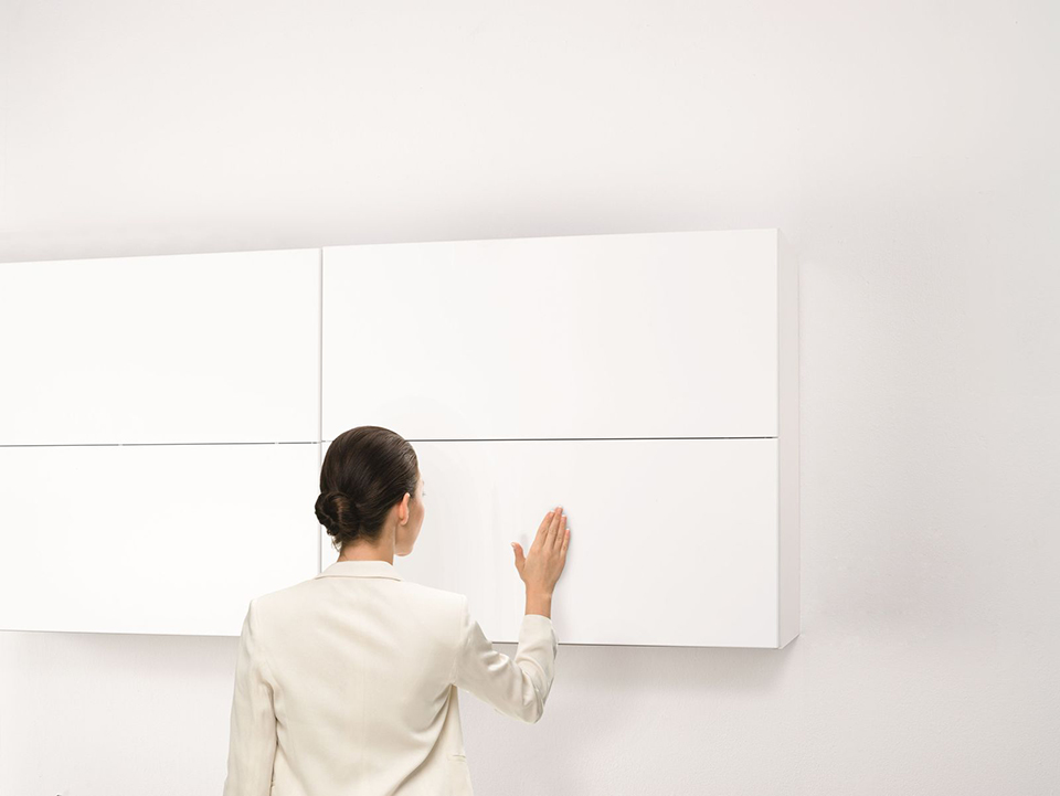 Quincaillerie pivotante avec mouvement doux et montage facile pour façades pliées. L'ensemble comprend une paire d'abattants avec bras et quincaillerie frontale pour bras. Convient pour une hauteur de caisson de 770-840 mm. Poids de la façade 4,9 - 9,8 kg. Il est nécessaire de compléter avec des caches ainsi que des charnieres supérieures et centrales.